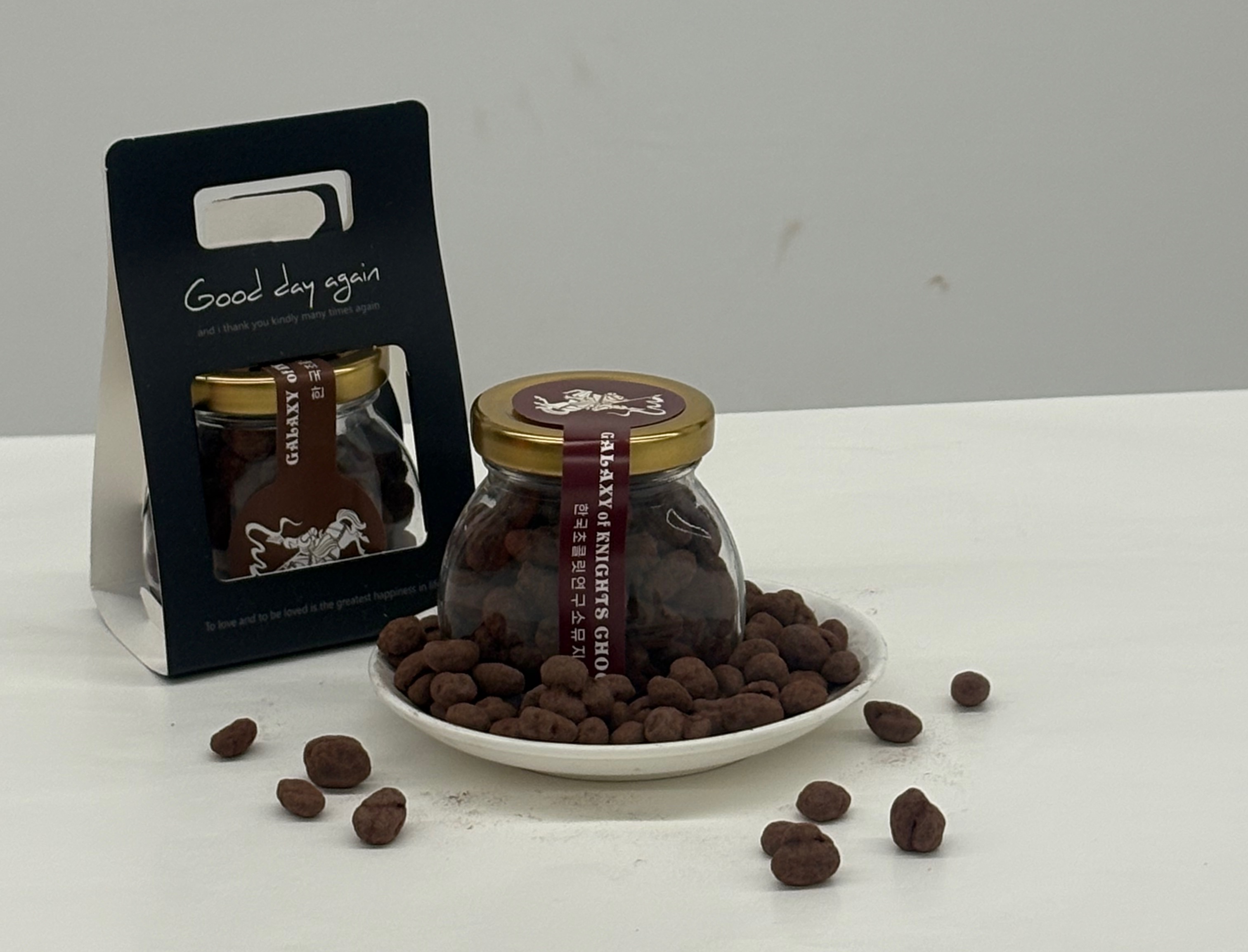 블루마운틴 커피 원두에 55%의 다크 초콜릿을 돌돌 입혔습니다.